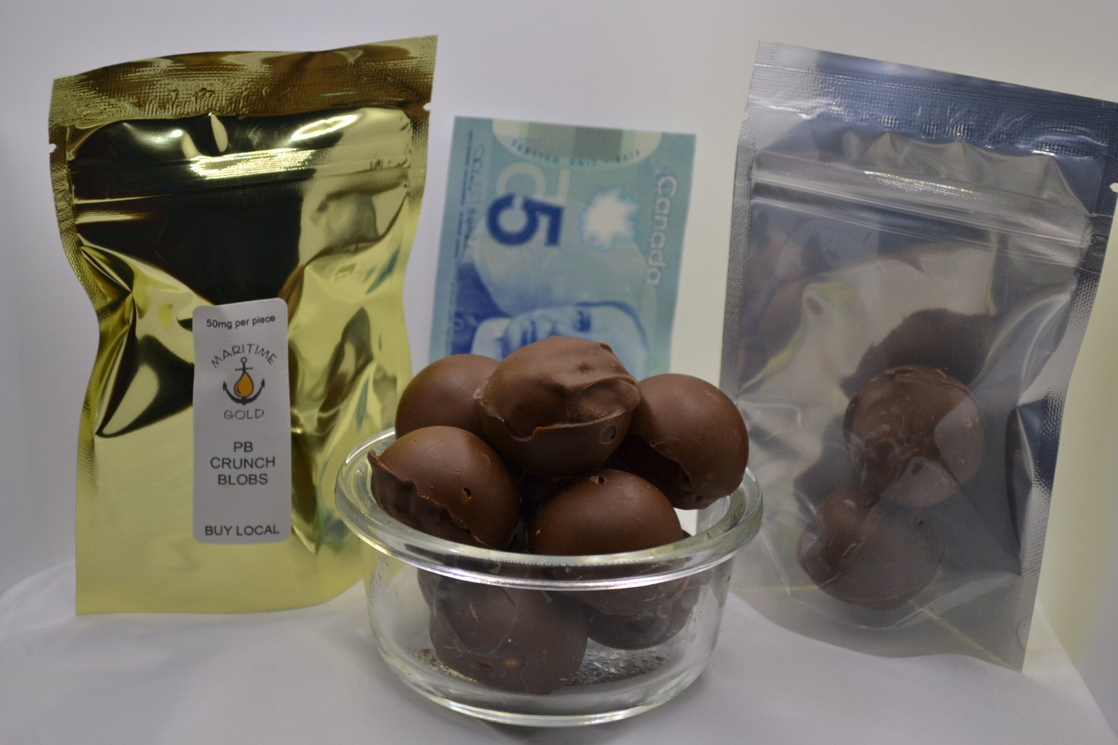 Our Peanut Butter Crunch Blobs are 50mg each, and come in a bag of 2.